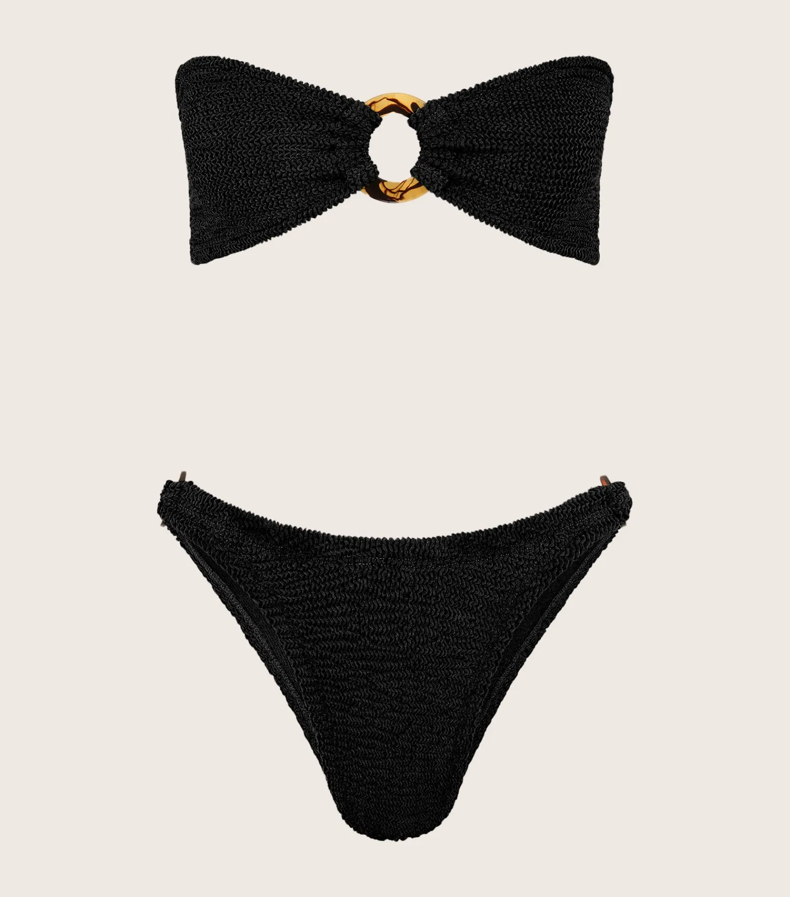Hoops for days: nod to the 70s with the Gloria Bikini’s strapless bandeau top and tortoiseshell detailing.