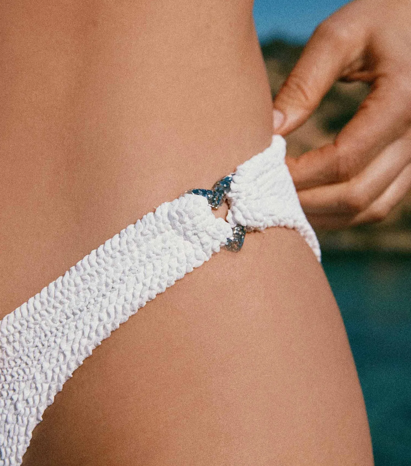 If your trip is all-about dialling up the fun, our cult classics Nicole serve up glitter heart detailing with a classic bandeau bikini cut that has wedding bells written all over them.Lighter colours may appear translucent when wet.