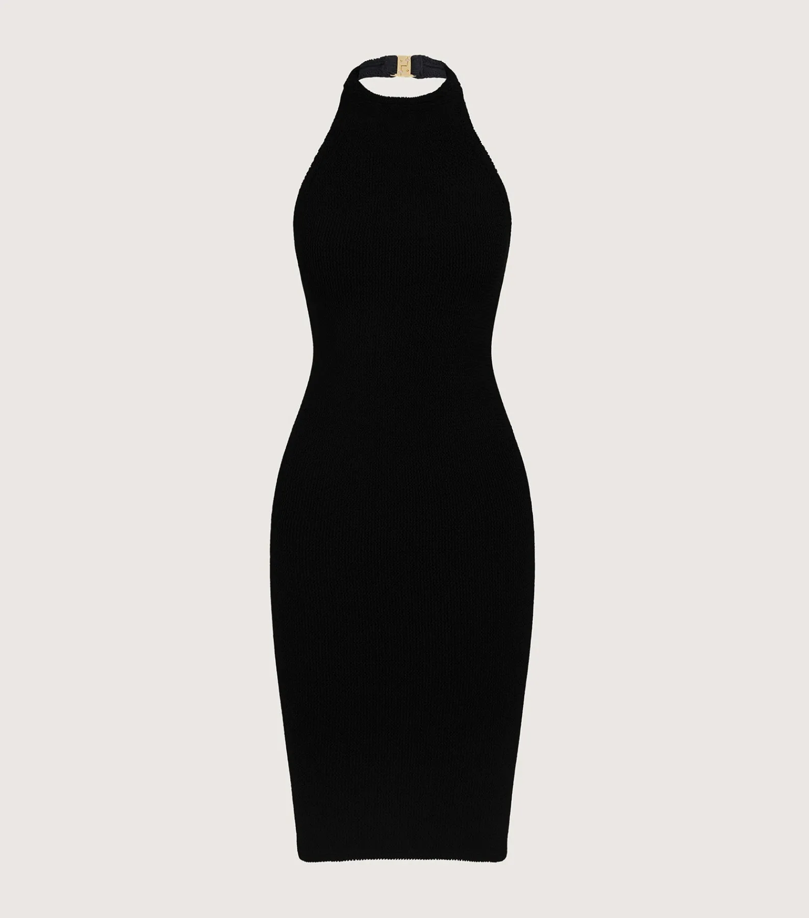 The day-to-night dress of your dreams. Keep it elegant with Polly’s high neck, mid thigh, halterneck silhouette.