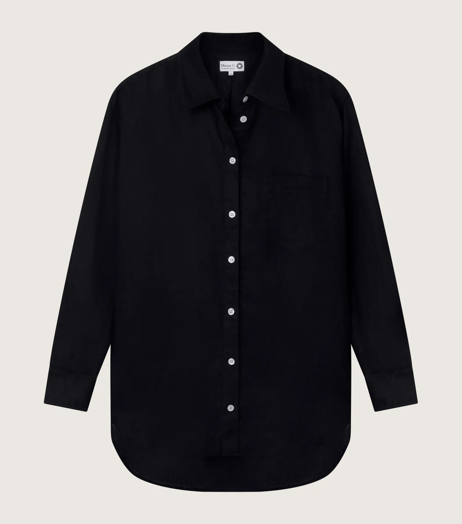 Easy, versatile, effortless. Pure linen shirt with branded buttons and a relaxed fit. Made to wear as a beach cover-up, weekend loungewear, relaxed evening dressing, and more. Available in three sizes.Model is 180.5cm/ 5’11” and is wearing size Small/Medium