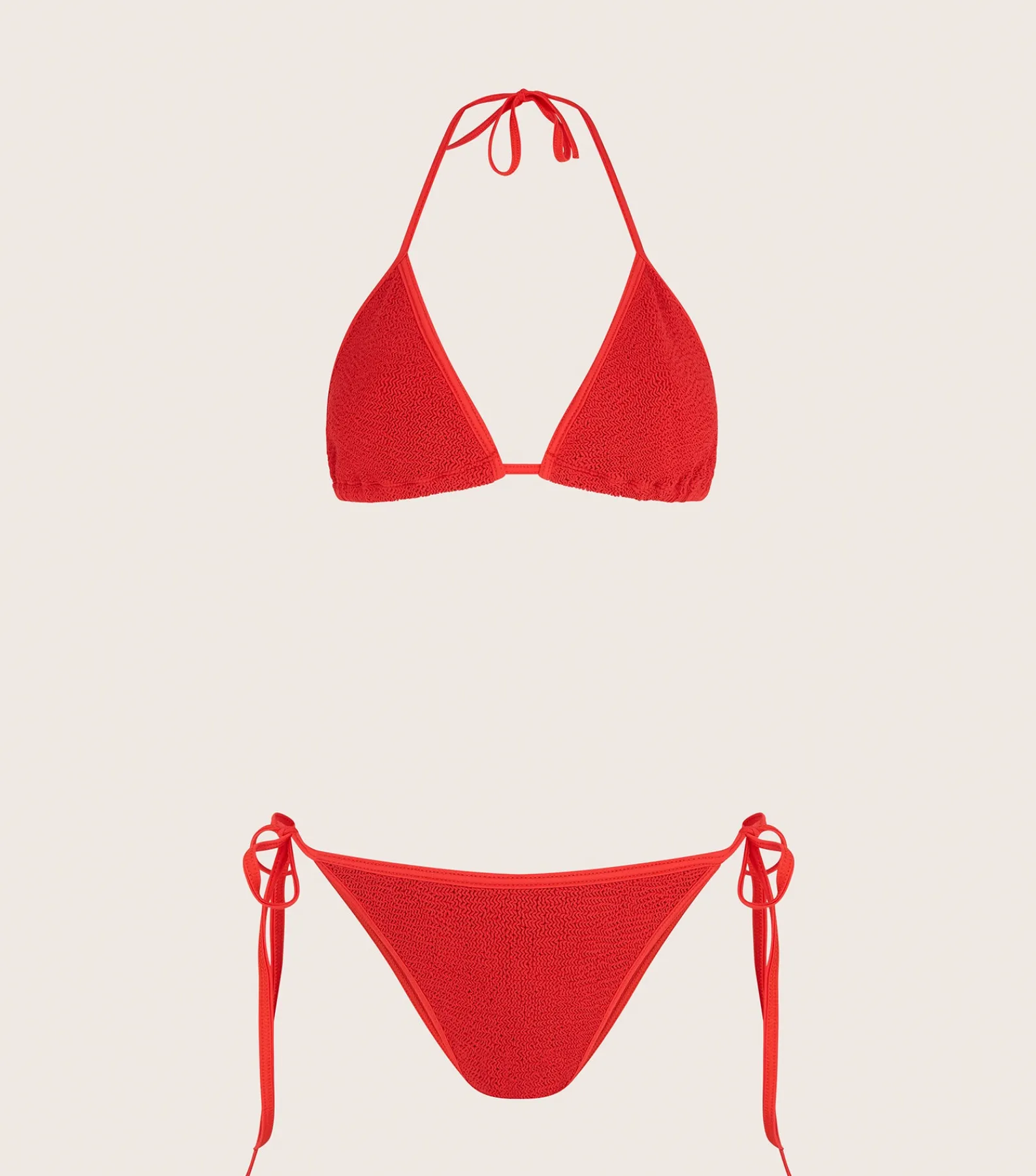 It’s here, the original Hunza G triangle bikini. This versatile classic has an adjustable neck and side ties so you can style it your own way. Your new favourite bikini.