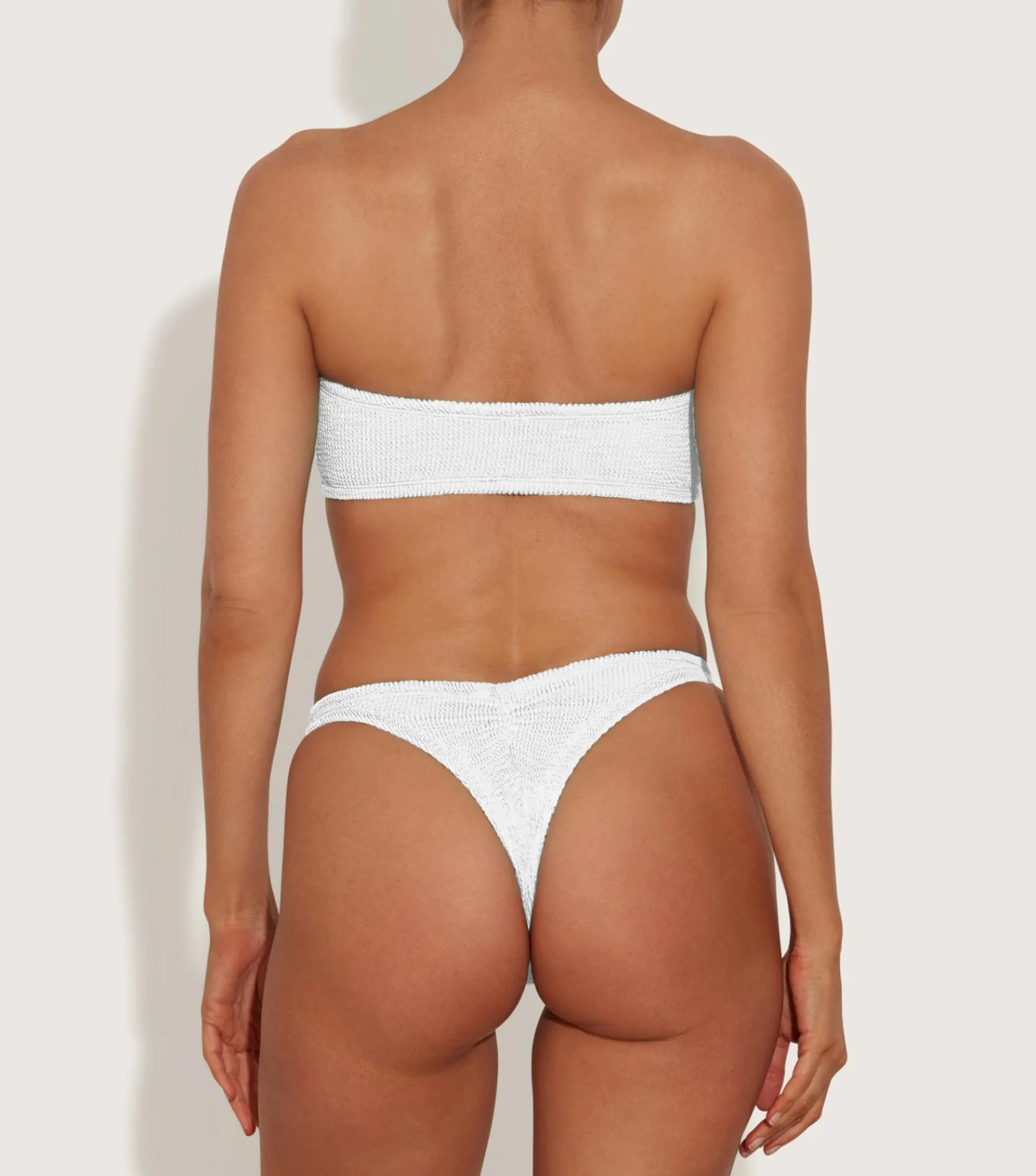 The Shay bikini takes our cheekiest fit Brazilian bottoms and pairs them with a classic 90s bandeau top for chic beach-ready style – without the tan lines.Lighter colours may appear translucent when wet.