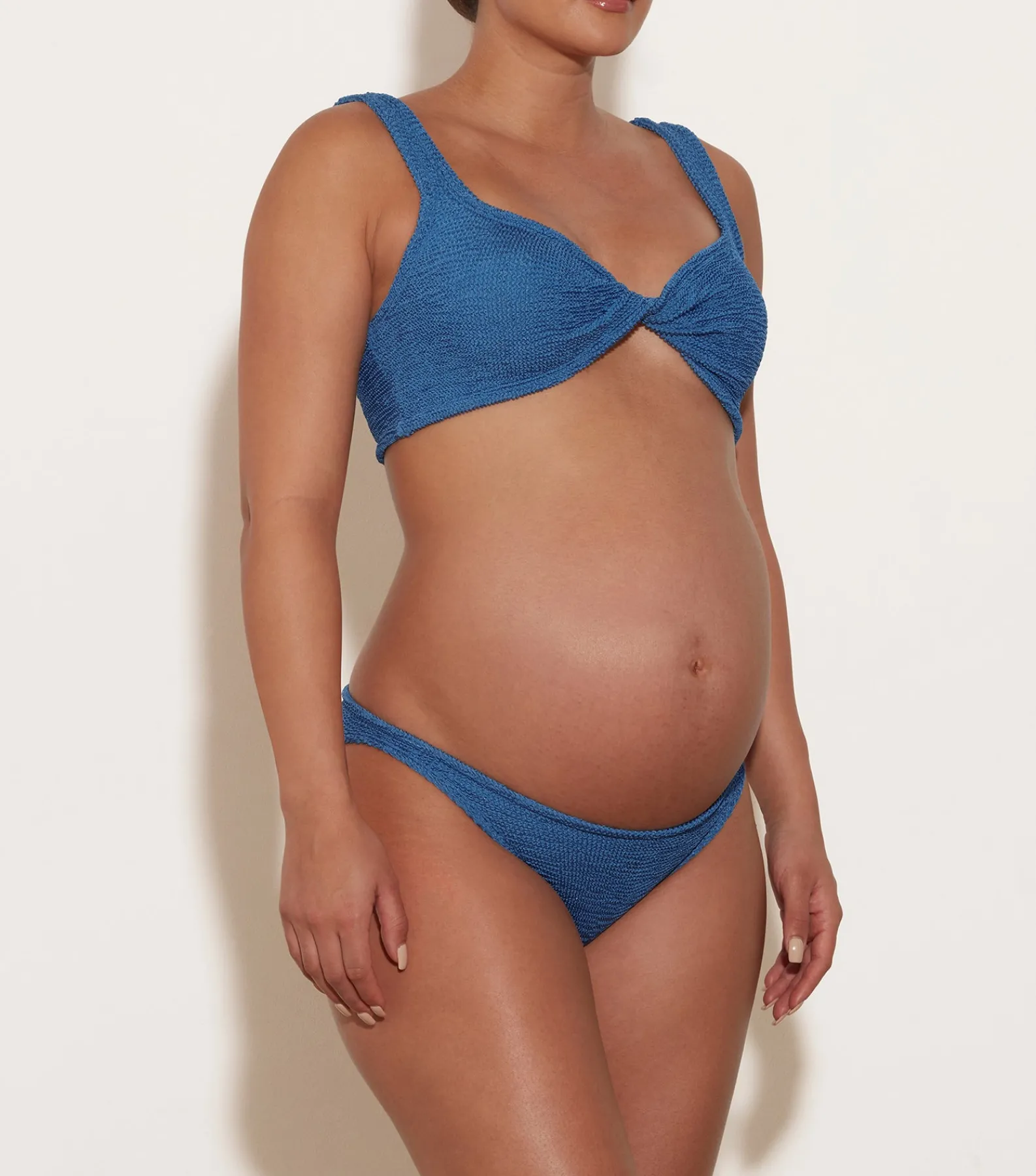 Support and style meet with Juno’s twist detail top and classic coverage bikini bottoms that can be worn high or low on the hip. Designed for all that life brings, our signature crinkle fabrication stretches and moulds to your body as it changes. One piece for before, during, and after pregnancy.