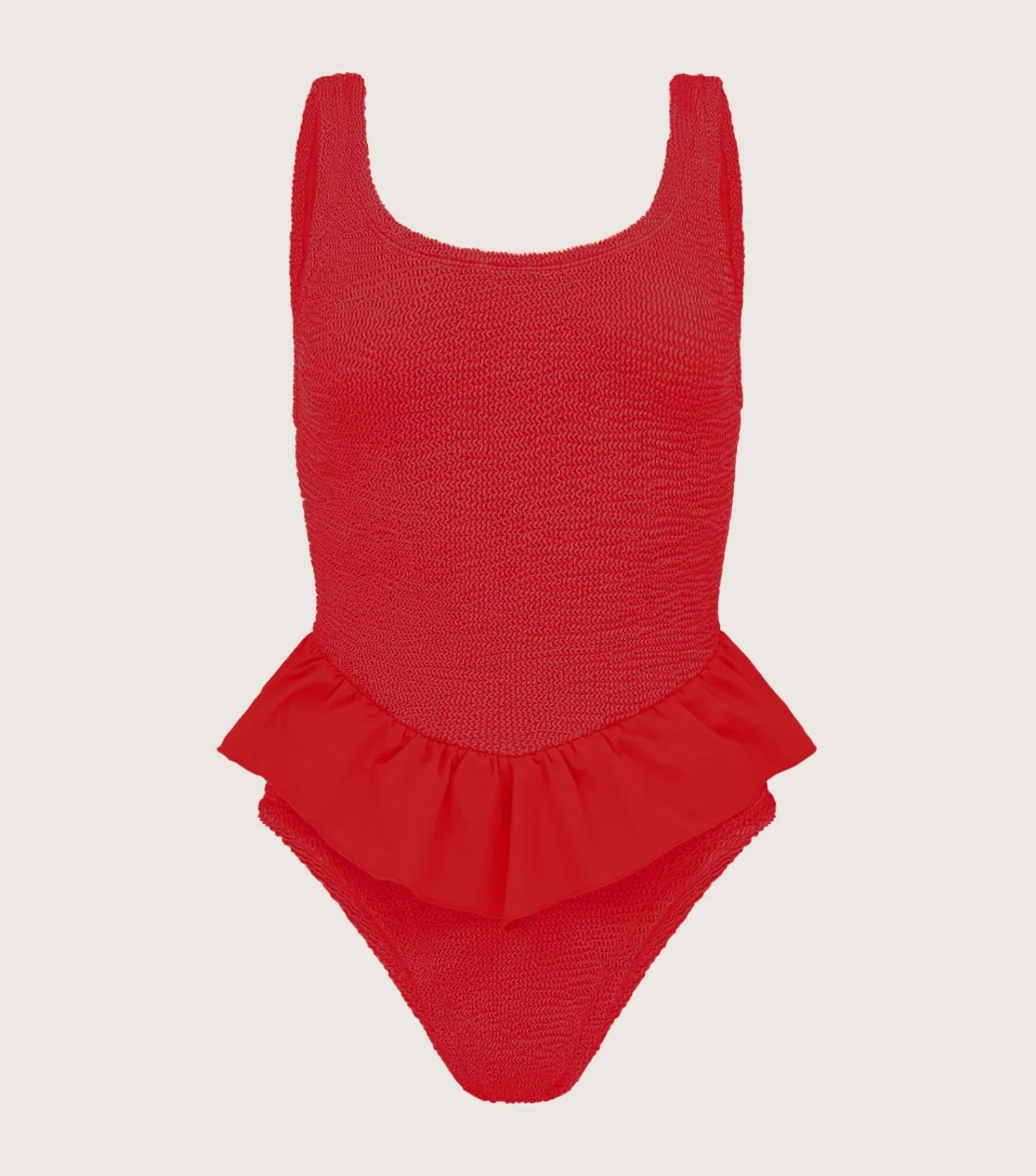 Ruffles please. Add some whimsy to your swimwear arsenal with the Denise swimsuit’s peplum frills – brought back from the Hunza G archives.